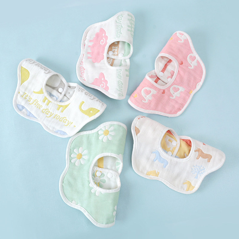 Cotton saliva towel baby petal bib children's bib 360 degree rotating saliva towel pure cotton washable
