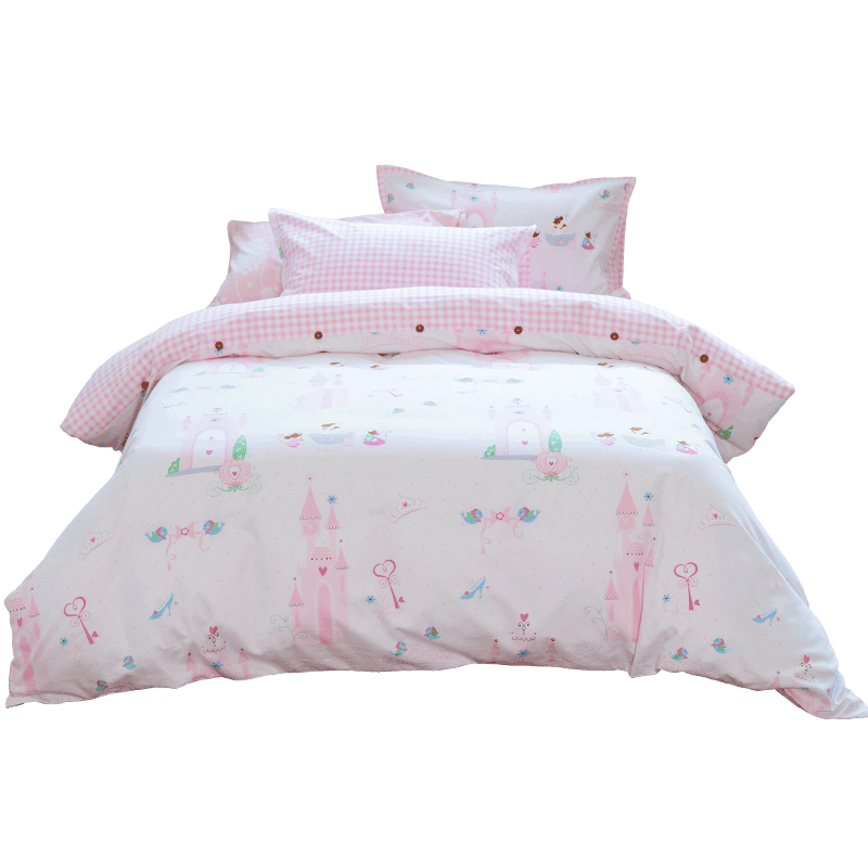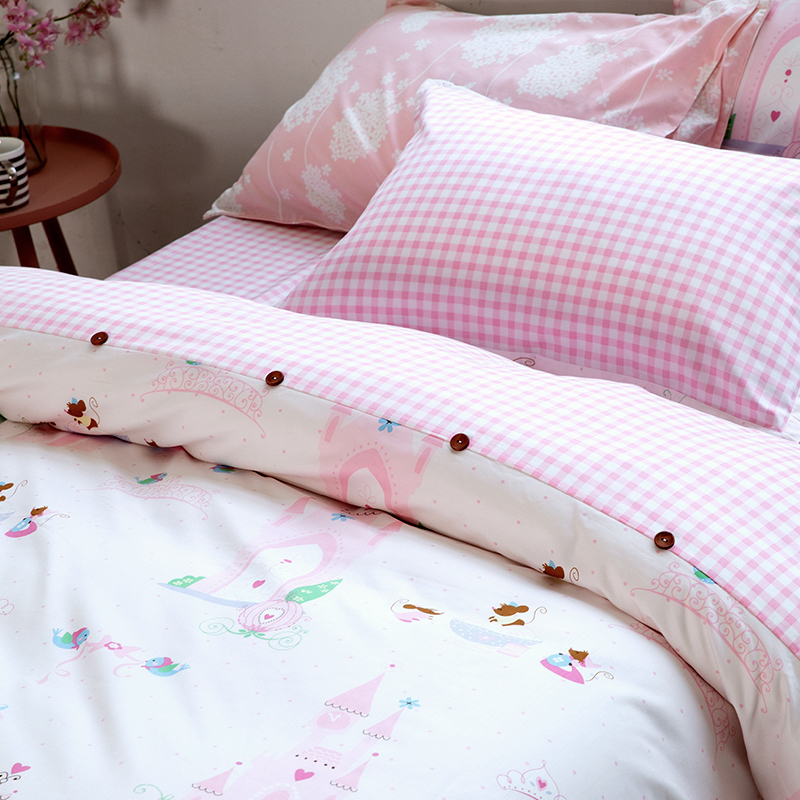 Blue platinum Dreamland children's four-piece set bed cotton pure cotton skin-friendly cartoon pink princess wind cute girl