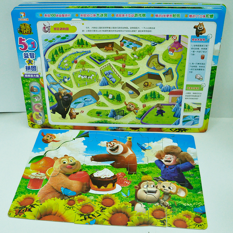Bear Bear Park 5 Fit 1 Puzzle Big Jigsaw Puzzle 100 Pieces Jigsaw Puzzle 3-6 Year Old Toddler Puzzle Force Brain Paper Puzzle