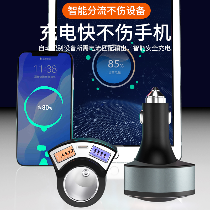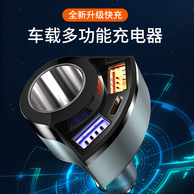 On-board charger One drag second cigarette lighter convert plug usb mobile phone multifunction QC fast charging car charging