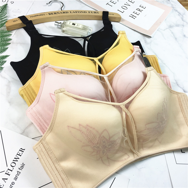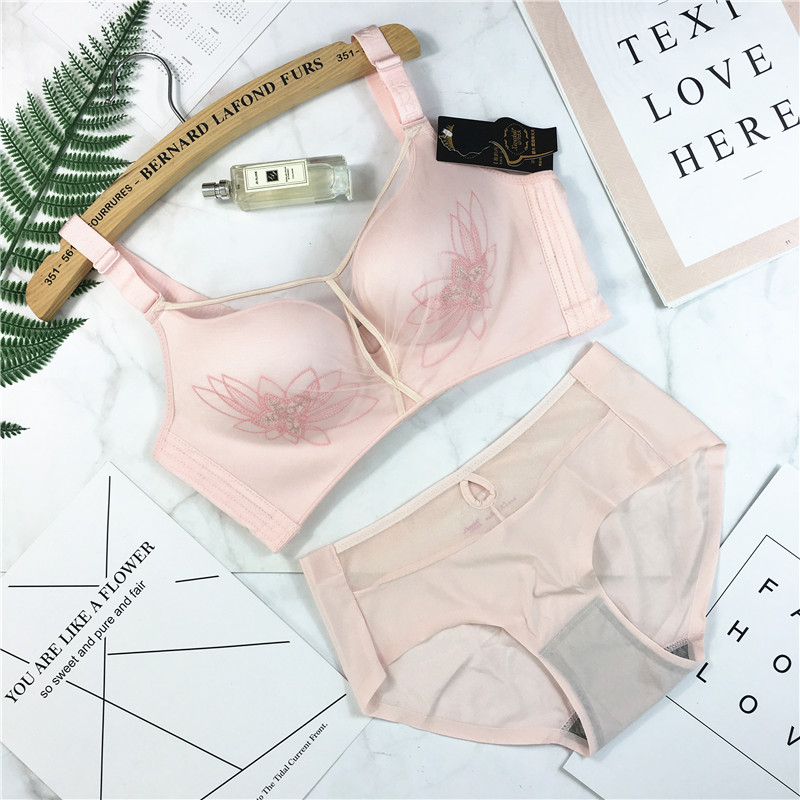 Towards Big Underwear Poly Bra Woman Thickened Anti-Walking Light Small Chest No Steel Ring Hollowed-out Pivot Sexy Suit