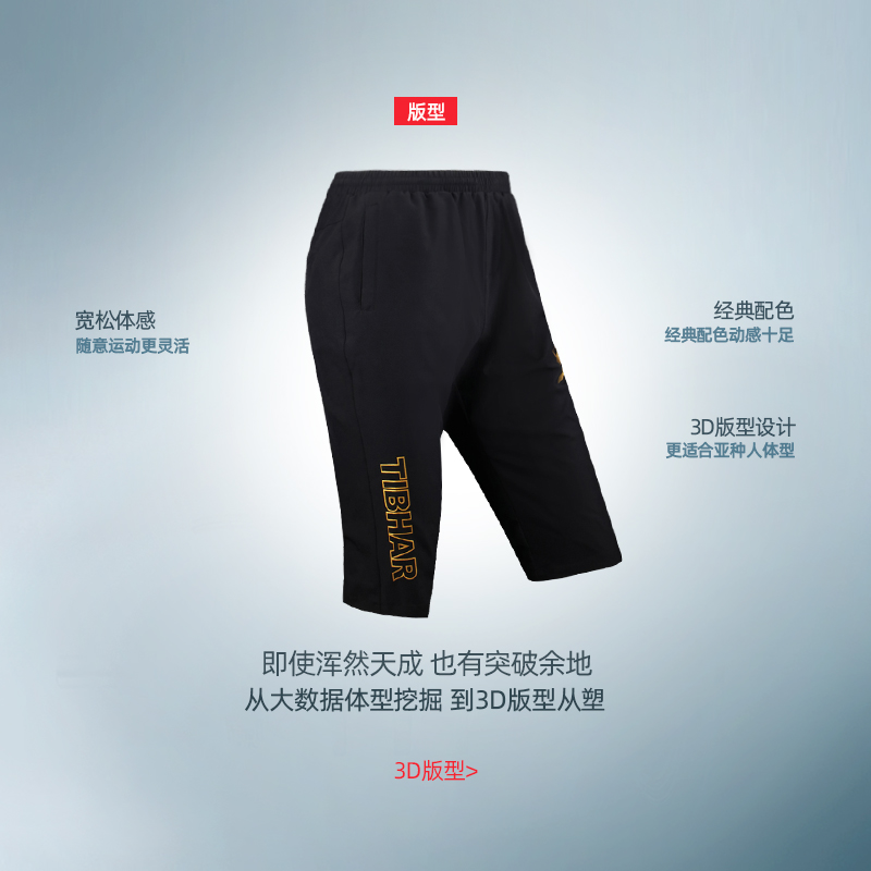 TIBHAR Germany straight table tennis shorts Men's and women's sports shorts three-point pants Quick-drying sports pants breathable loose