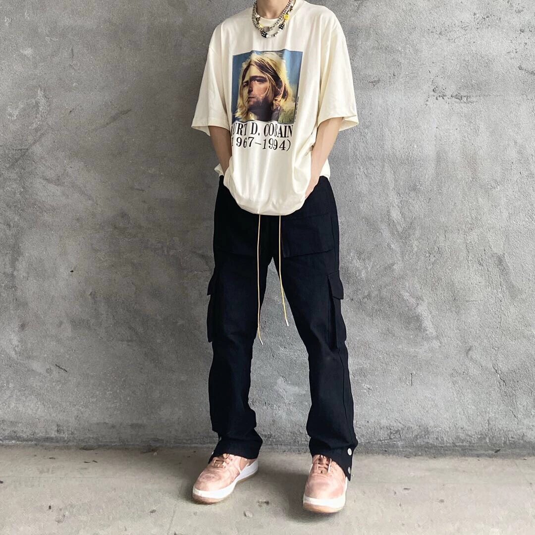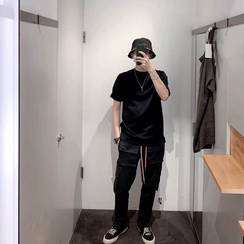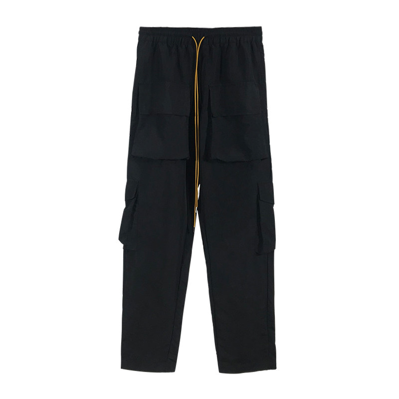 (Fugui) Works pants Tactical multiple pockets Drawing Rope Movement Casual Loose Buttons Long Pants Trendy High Street Pants