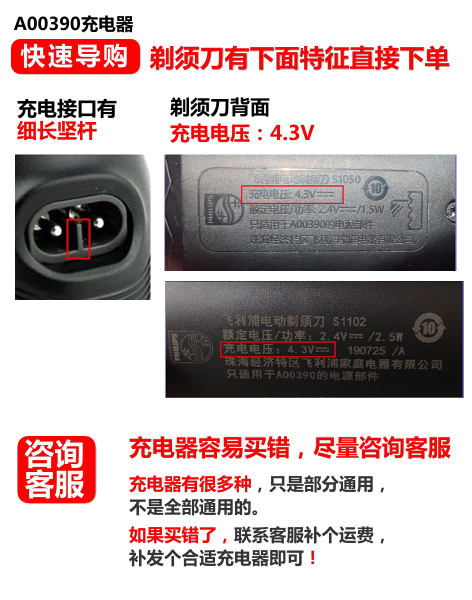 Suitable for Philips electric razor shaving charger power cord universal S301S512S331S360s300