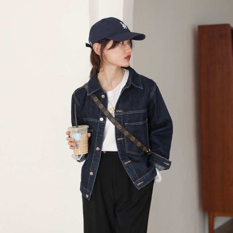 Hi Sen live dark blue short denim jacket female 2022 new spring and autumn dress shoulder small jacket autumn