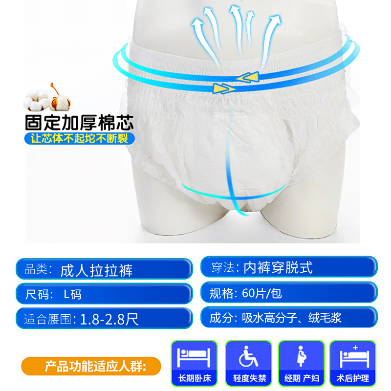 60 tablets adult pull-up pants for the elderly with elderly diapers not wet diapers for men and women wet economy