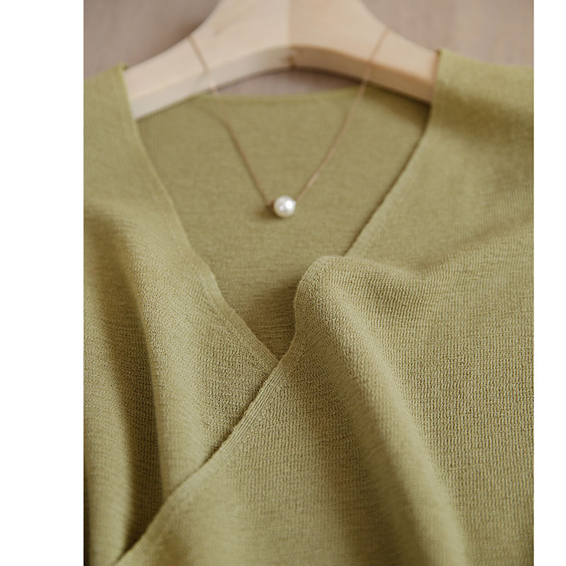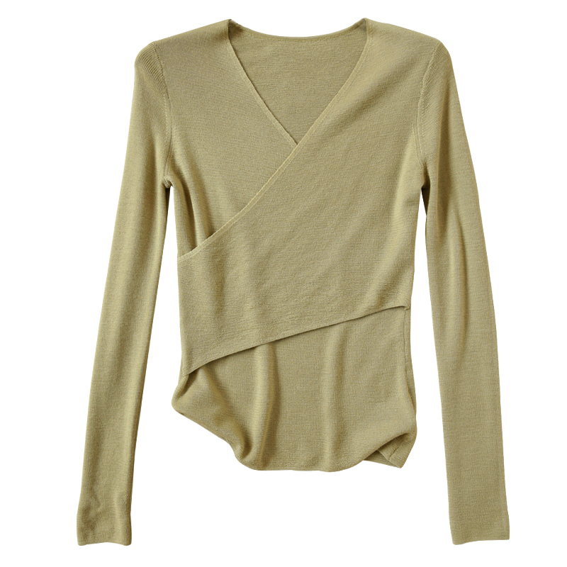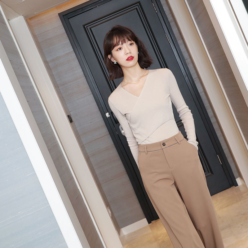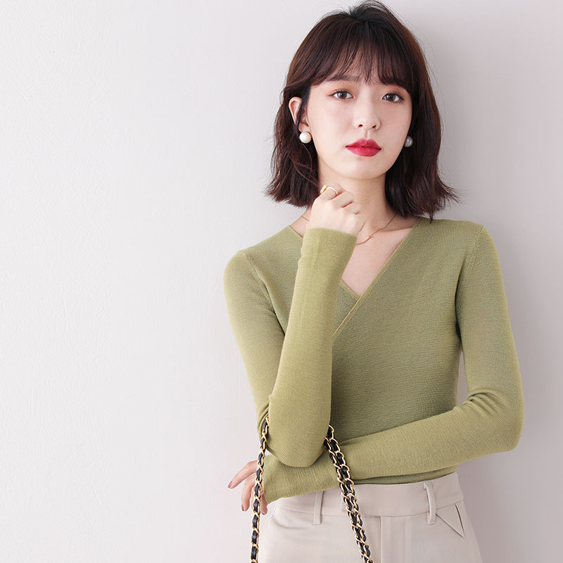 JOLIMENT cross V-neck wool long-sleeved pullover sweater women's autumn new slim bottoming shirt top