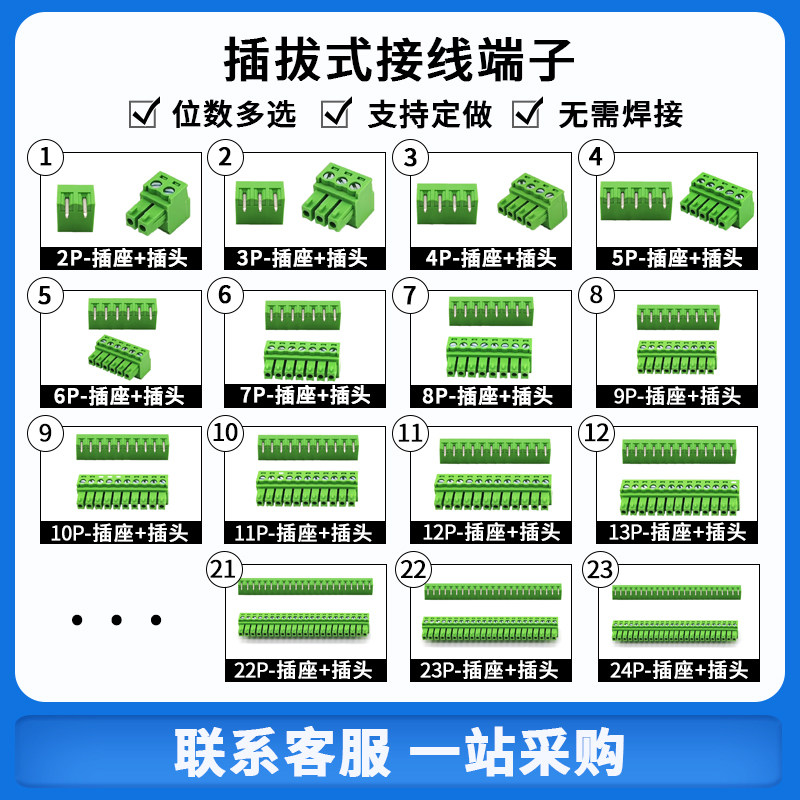 Straight needle Block 2P wiring terminals (1 set) Straight needle Block 3P wiring terminals (1 set) Straight needle Block 4P wiring terminals (1 set) Straight needle Block 5P wiring terminals (1 cover)