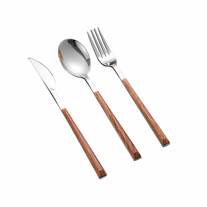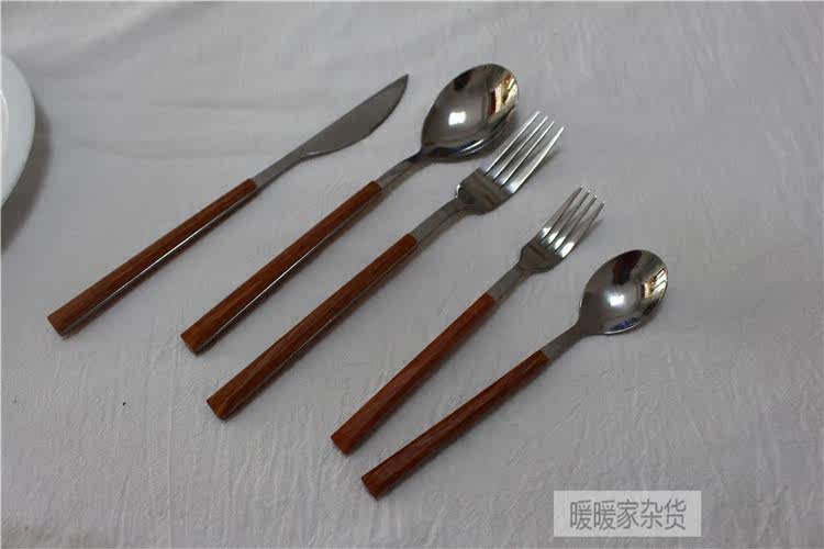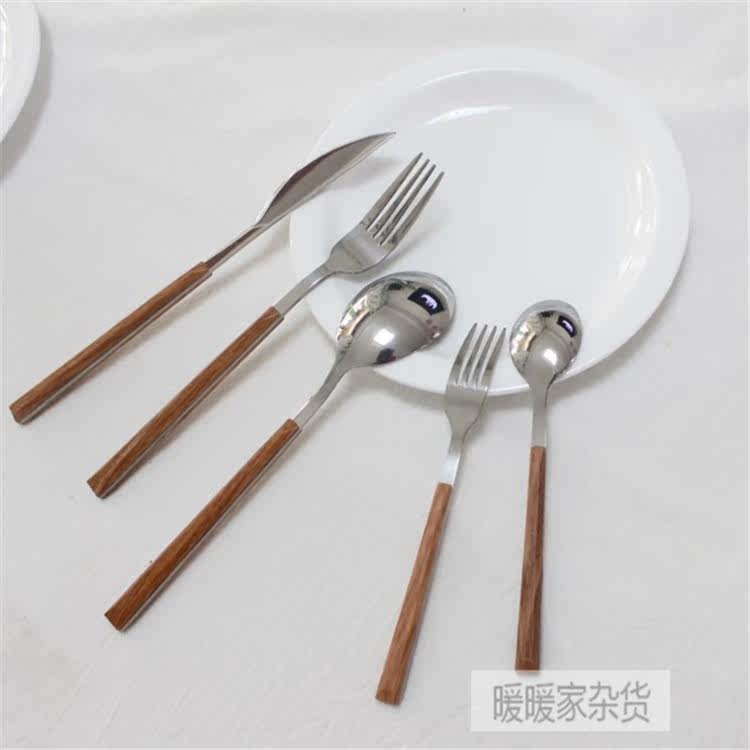 ins retro Han wind imitation wood handle stainless steel knife fork spoon sweet fork spoon suit Western food cutlery soup spoon