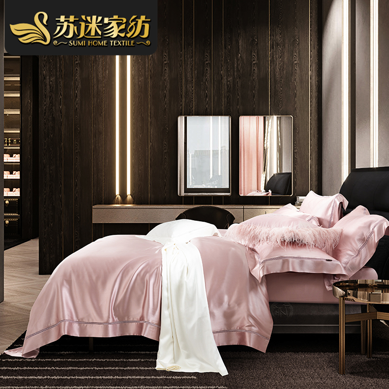 Su fan Home Textile pure President Villa Pink Advanced Genuine Silk Four Pieces of 100% mulberry silk Heavy Bed bedding