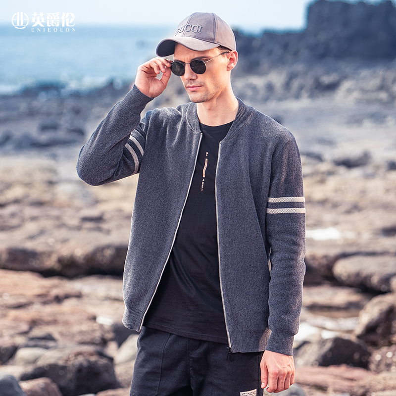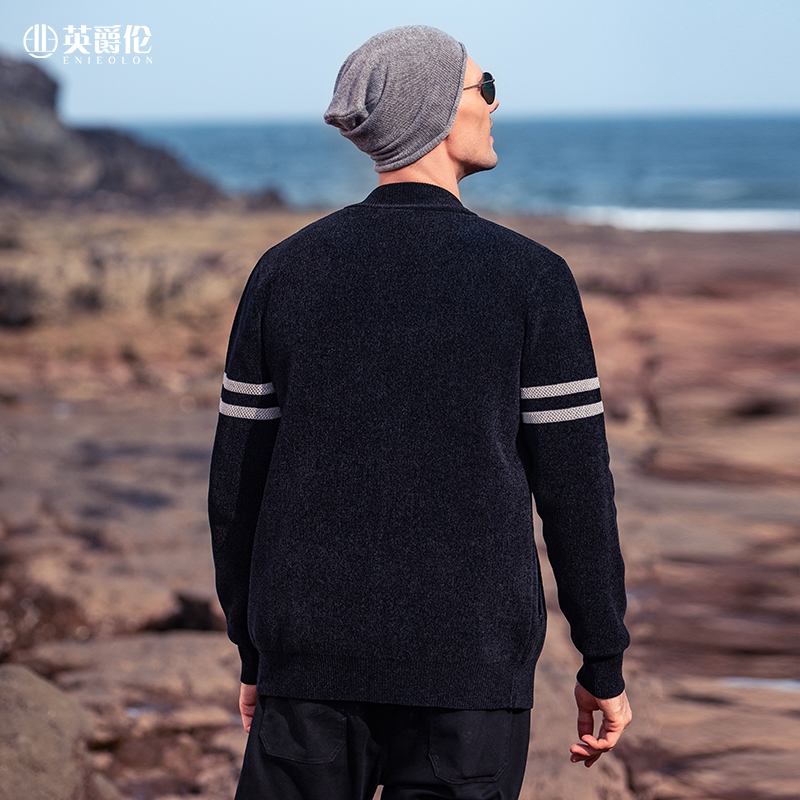 British chenille 2022 new men's cardigan sweater striped contrast color knitted jacket autumn and winter trends