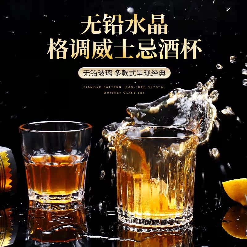 Whiskey glass bar KTV beer cup tempered octagon cup Diamond glass cup round glass