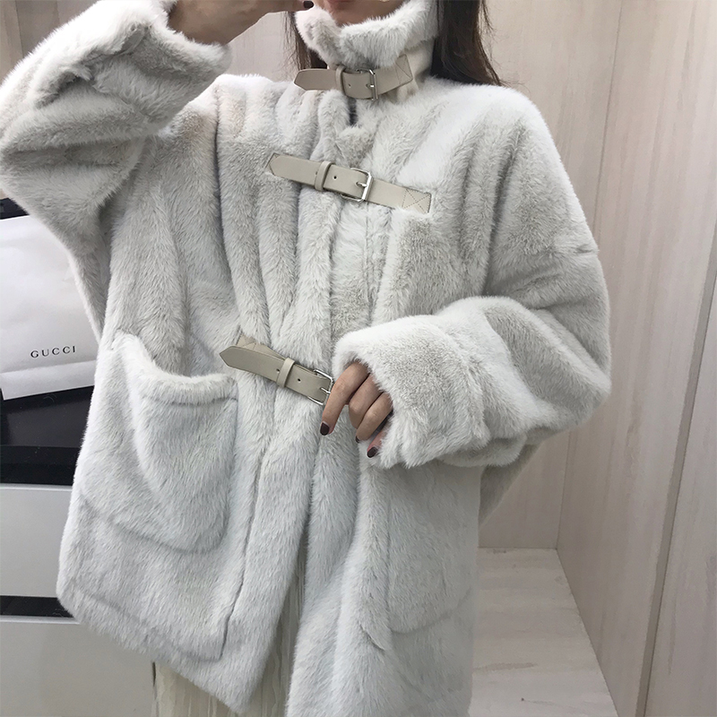 2022 winter new fashion thin imitation mink velvet fur coat women's mid-length thickened warm plush coat