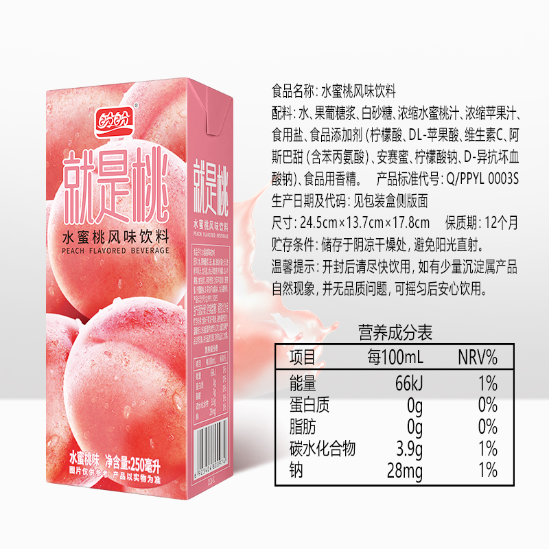 Pan Pan drink peach juice flavor 250ml * 24 boxes of beverage whole carton peach juice carton wholesale