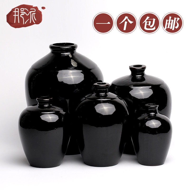 Earthenware black glaze ceramic wine jar bottle 1 catty 2 catty 3 catty 5 catty 10 catty empty wine bottle with lid sealed jar