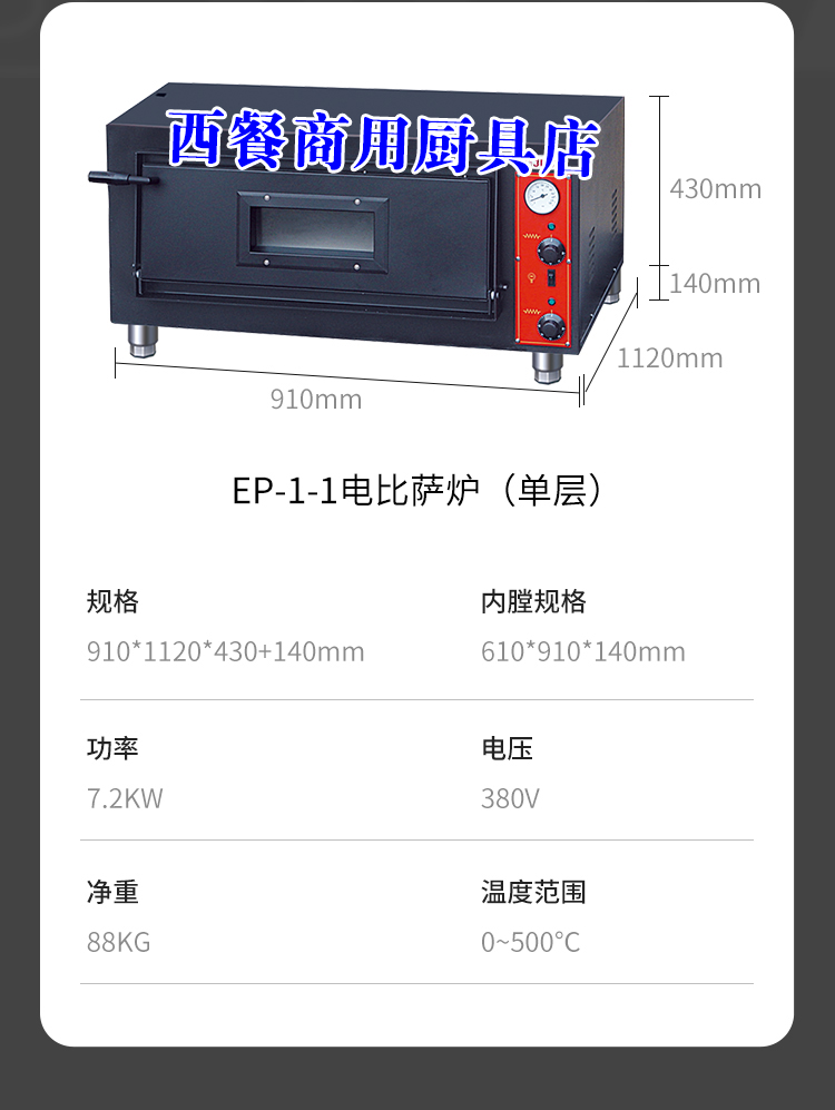 Canter Oven Commercial Pizza Oven EP-1-1 Single Layer Pizza Oven Large Capacity Grilled Chicken Oven High Power Flat Stove