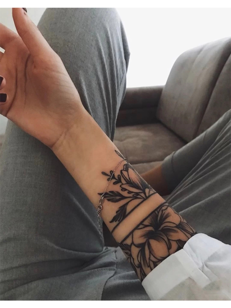 21 pieces Sexy big pattern flower tattoo sticker waterproof women's persistent dark system sweatproof realistic concealer cover