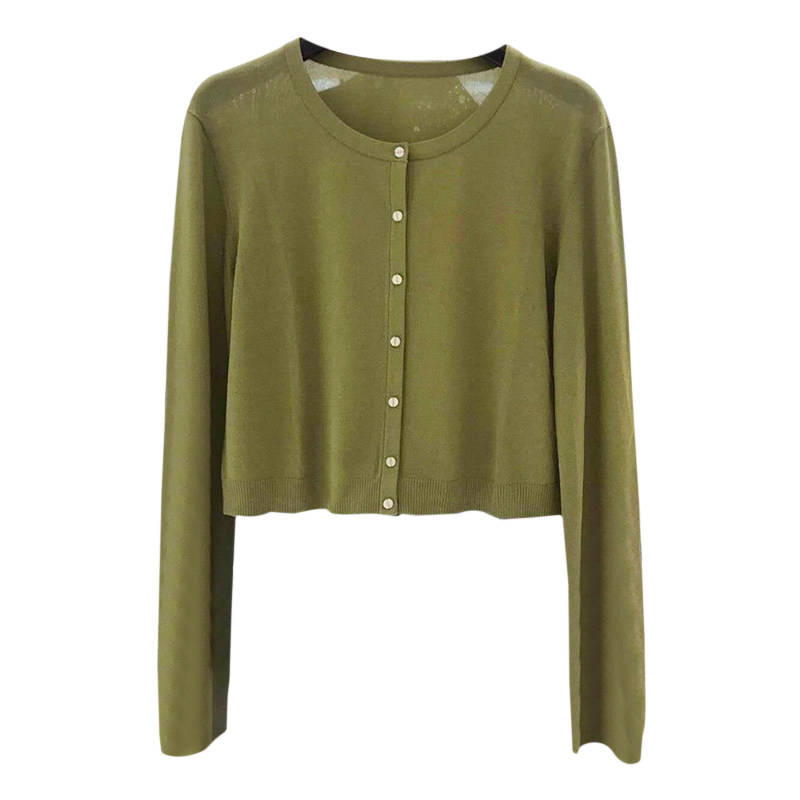 Counter brother's new 2022 spring and autumn round neck ice silk knitted cardigan women's loose thin coat air-conditioning shirt