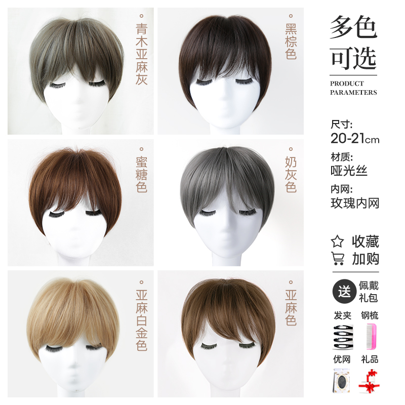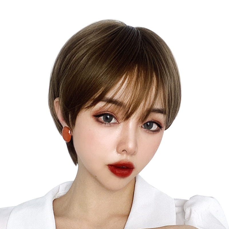 Wig female short hair natural girl round face repair handsome neutral super a shape oblique bangs Brown full head cover