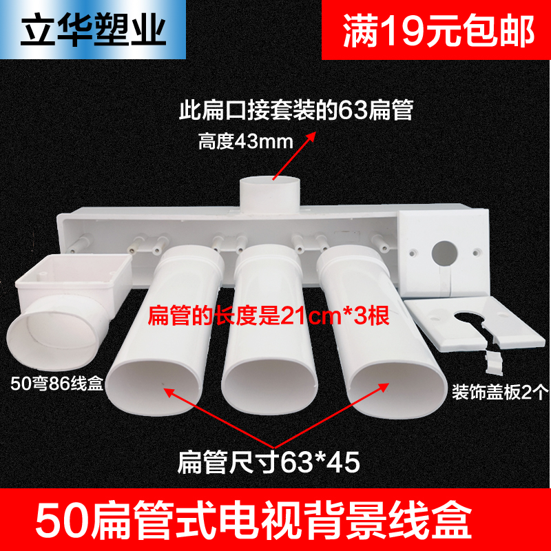 PVC86 type TV background box five-in-one audio and video bottom box 63 *45 flat tube wall embedded switch junction box