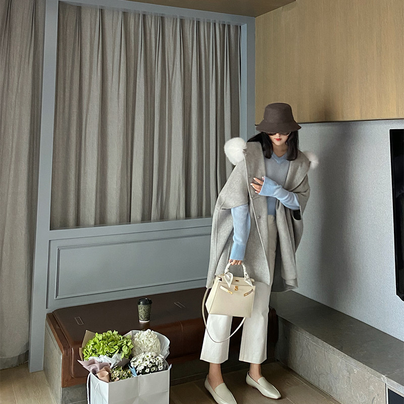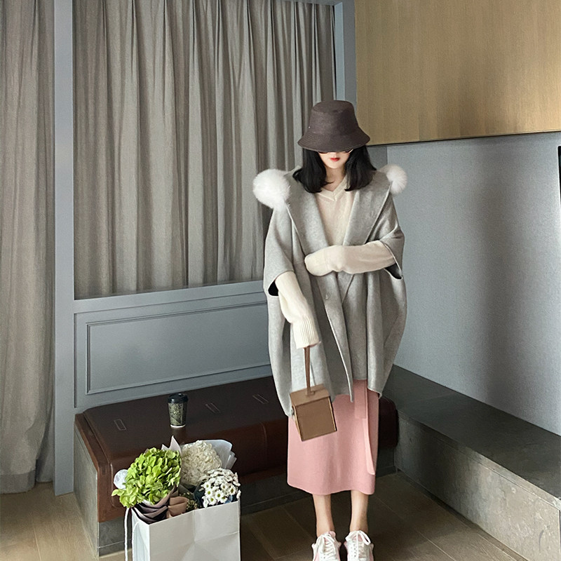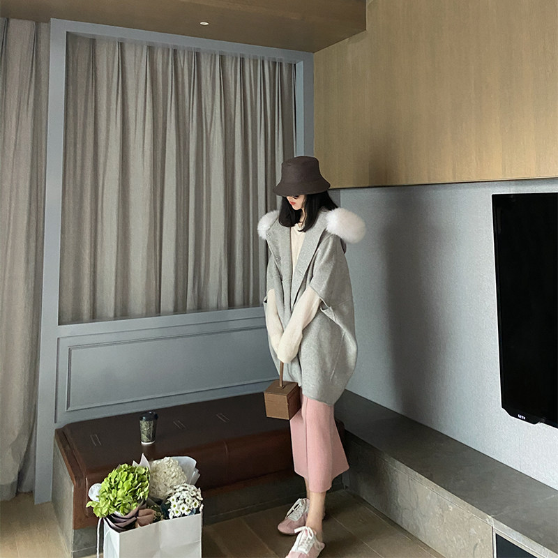 DORACTR si to share trendy small crowddesign Cocoon Type Cape 10 Cashmere 90 Austere Fox Fur