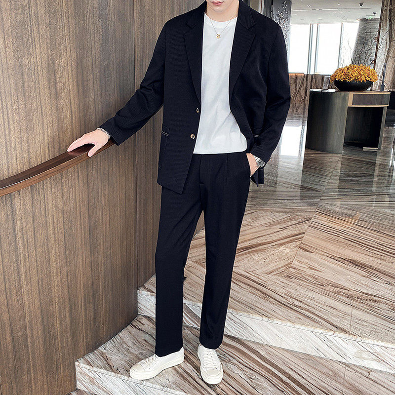 Fall men retro do old corduroy Korean version loose small suit fashion yuppie handsome suit two pieces