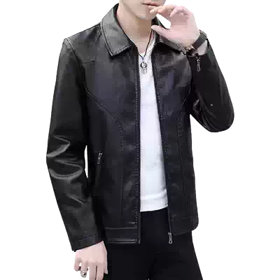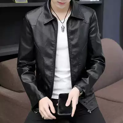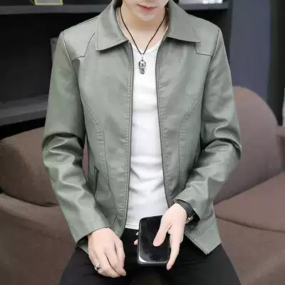 Autumn leather men's leather Korean version of the trend slim handsome men's casual leather jacket men's lapel leather coat wt