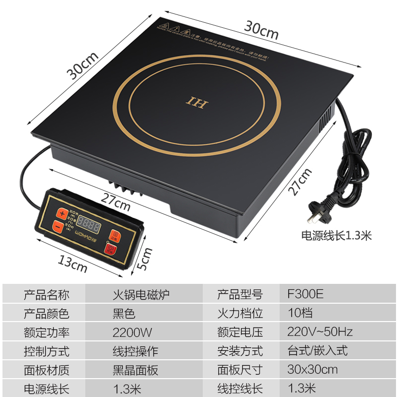 Volkswagen commercial hot pot electromagnetic furnace square embedded wire control high power 2200W hot pot hotel dedicated