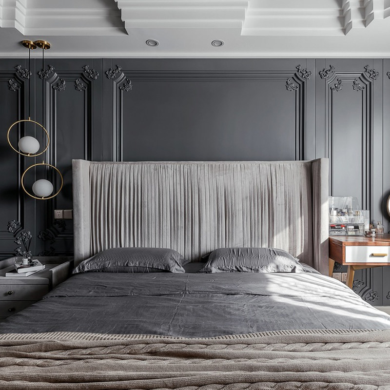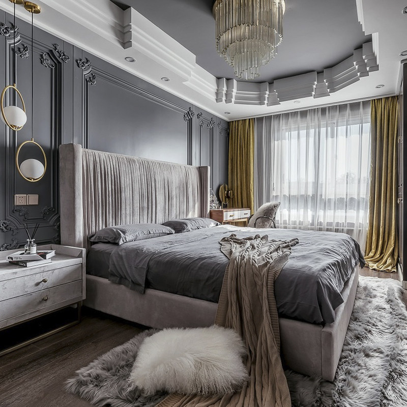 French fabric bed technology fabric bed double bed light luxury modern minimalist villa American bed princess master bedroom ins style