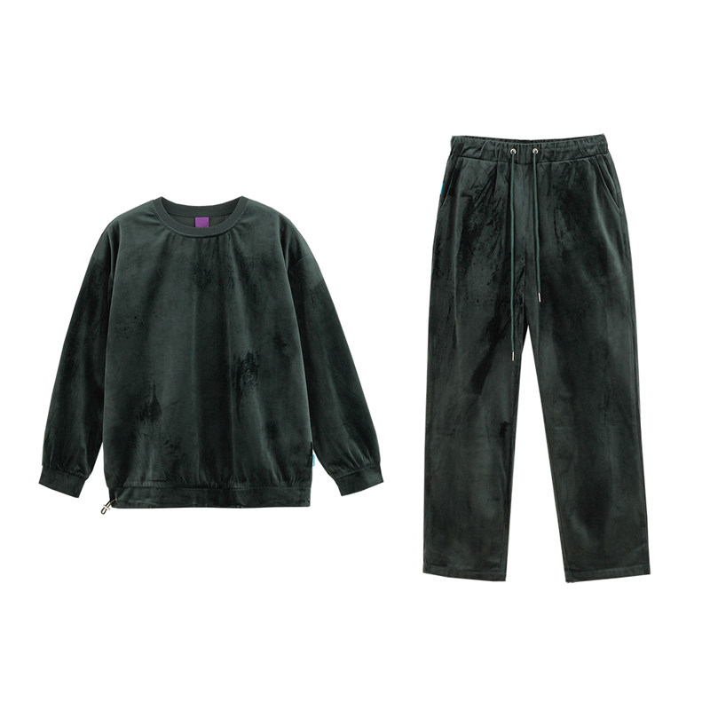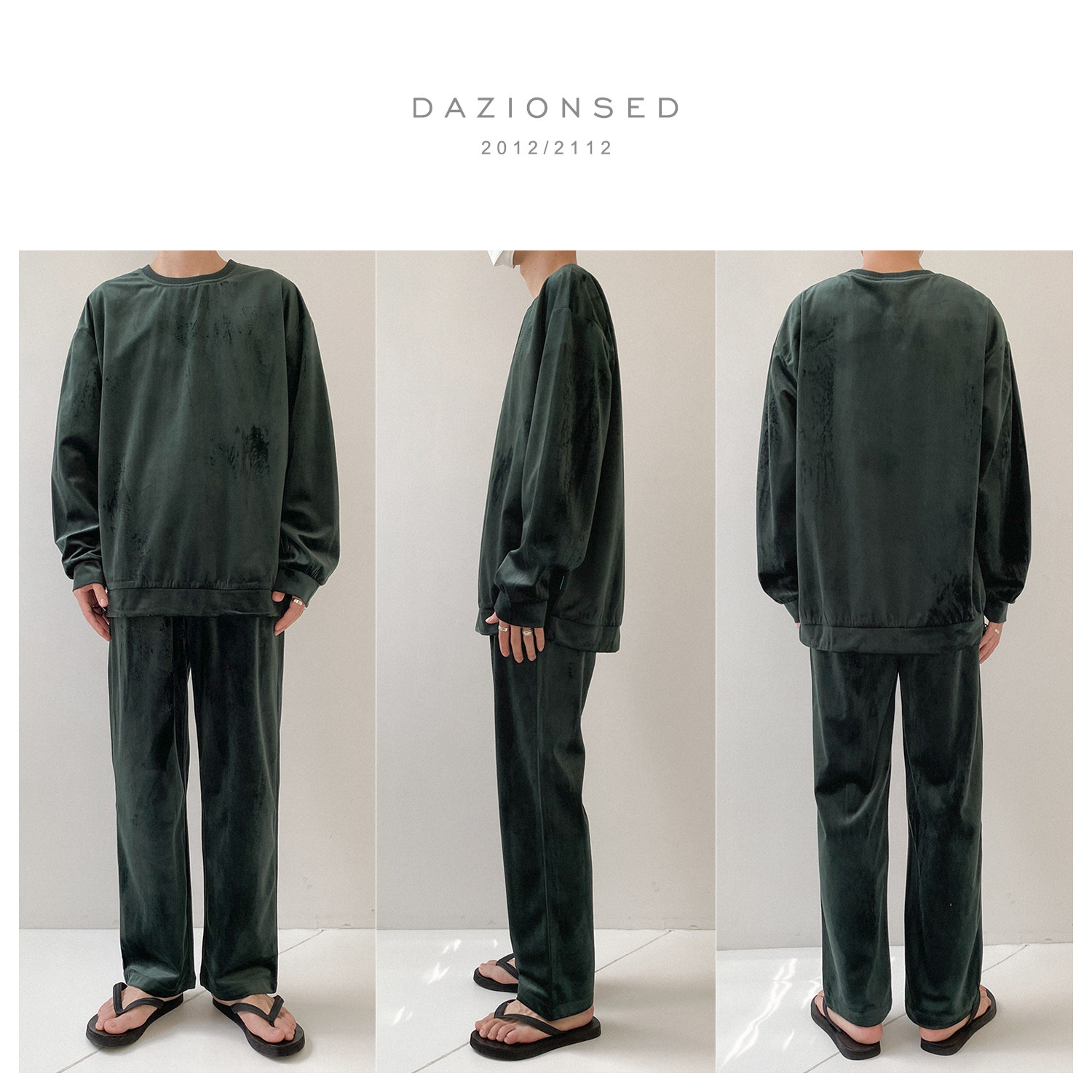 DAZO spring and autumn round neck pullover thick cotton T suit men's casual home velvet pajamas two-piece Korean trend