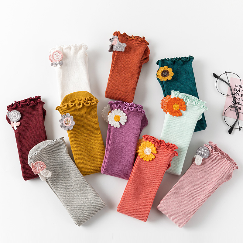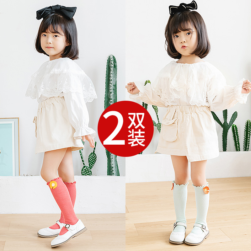 Children's bubble socks girls' socks spring and autumn spring and summer pure cotton border foreign pie baby princess middle and high stockings Korea