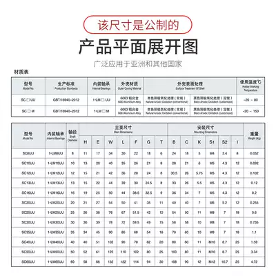 SCS 6 UU standard inner diameter 6mmscs 8 UU standard inner diameter 8mmscs 10 UU standard inner diameter 10mmSCS 12 UU standard