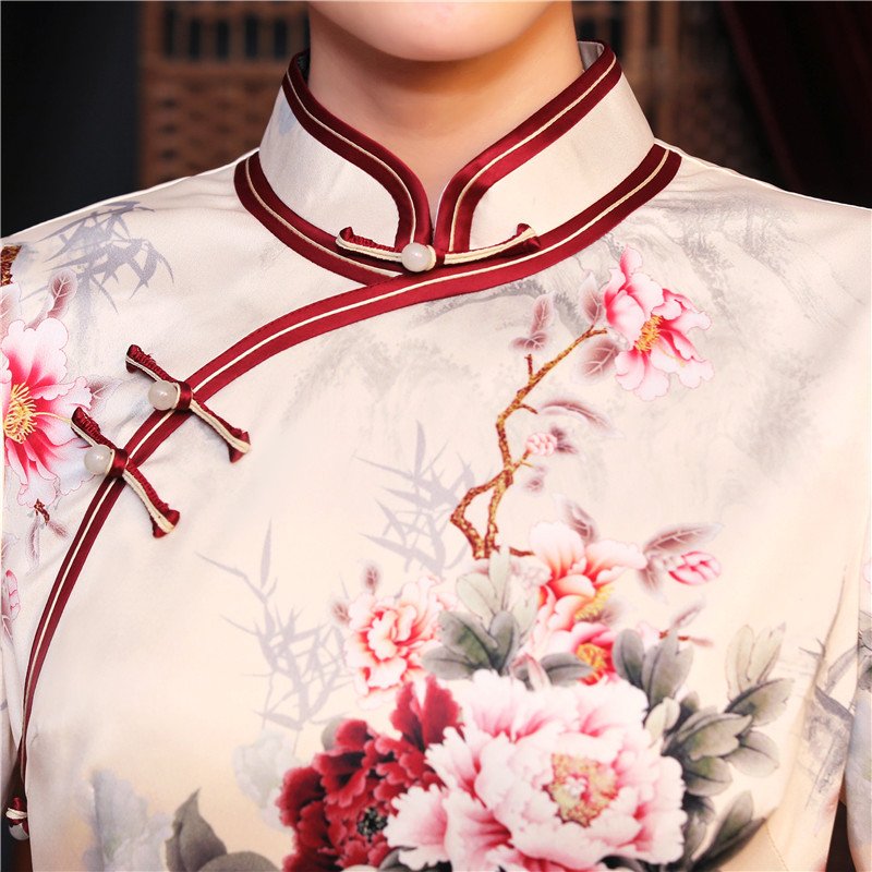 2022 new indeterminate printed silk satin face Chinese wind improved version qipao gown for foreign clothes comeback high-end female