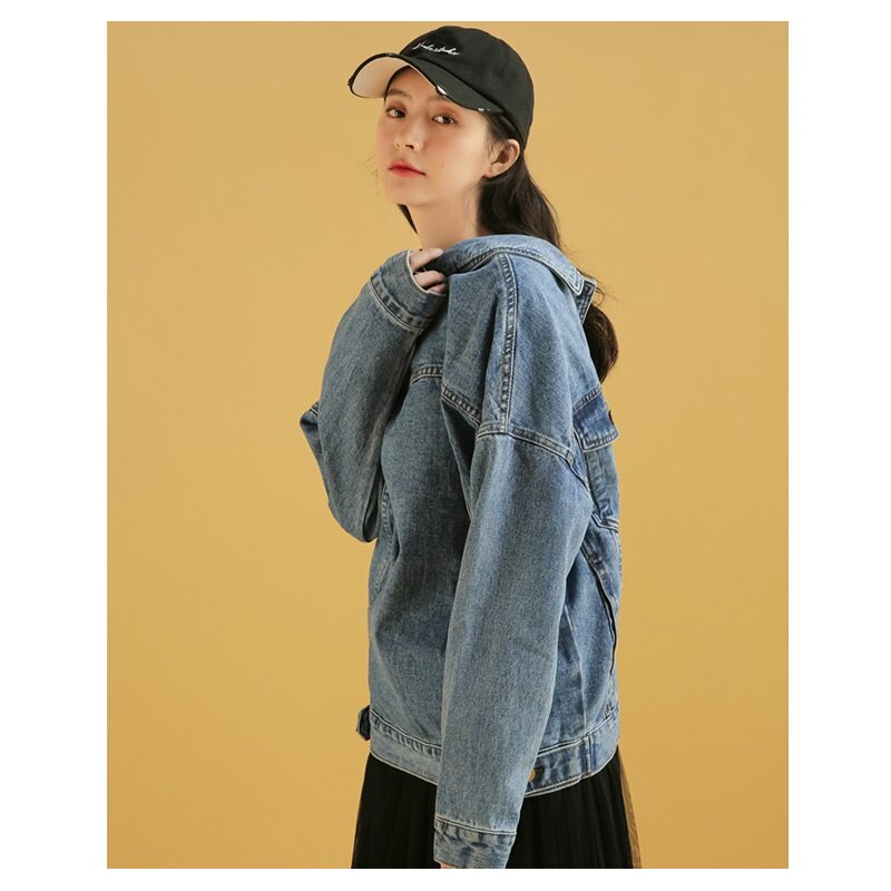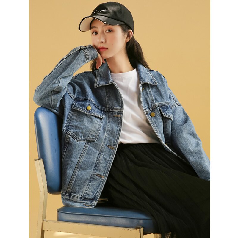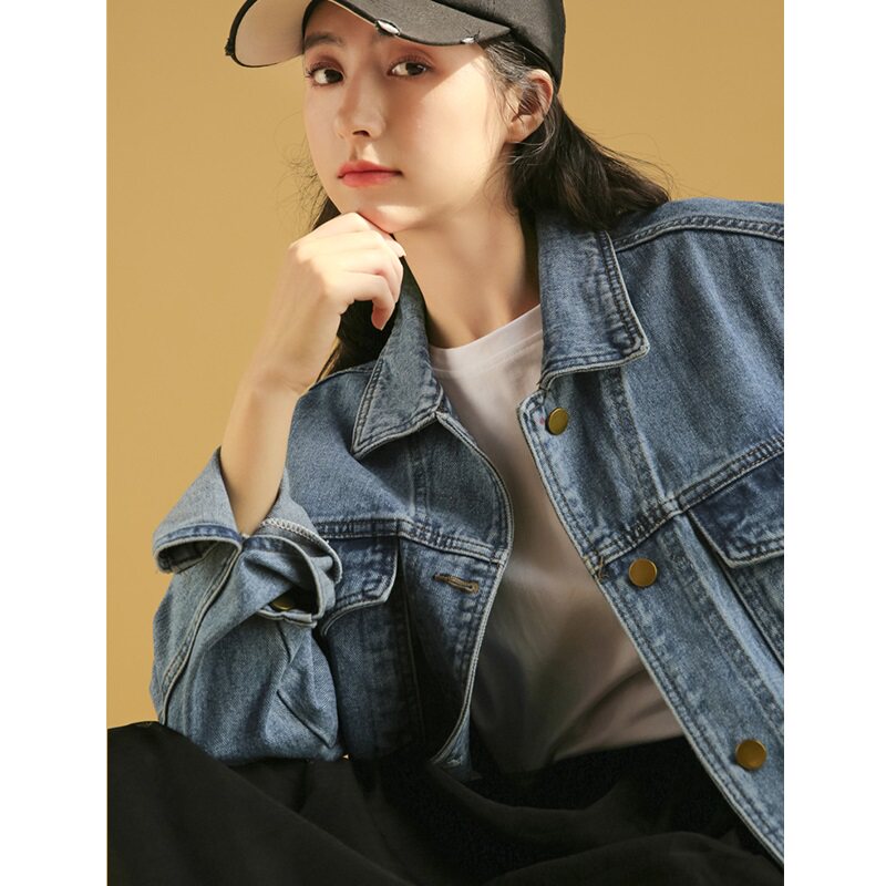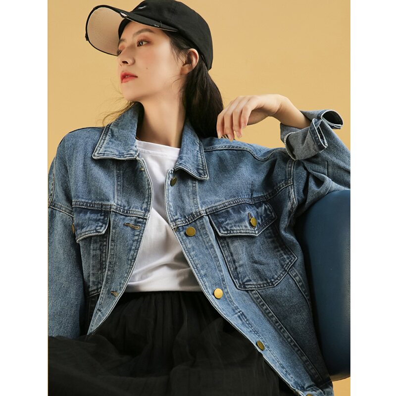 South Korean loose bf 100 lapped Korean version denim jacket woman 2022 Spring and autumn new 100 hitch long version of blouses