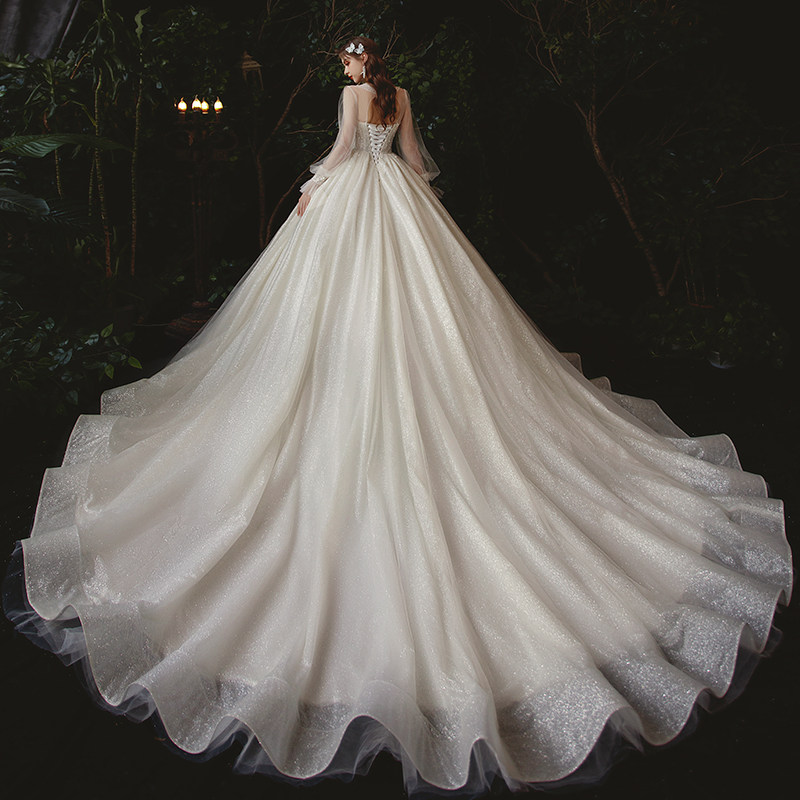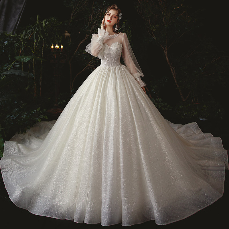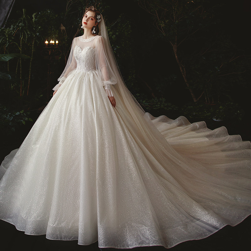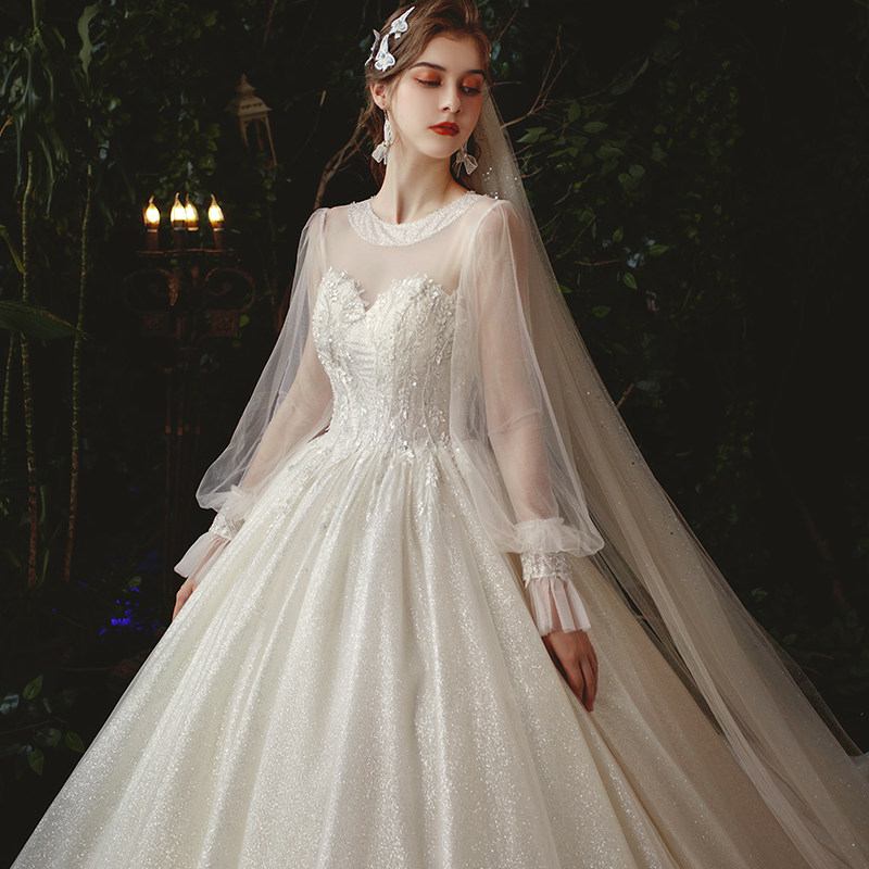 Mori main wedding dress 2021 new bride little tailed dream Super fairy long sleeve cover thick arm pregnant woman big size