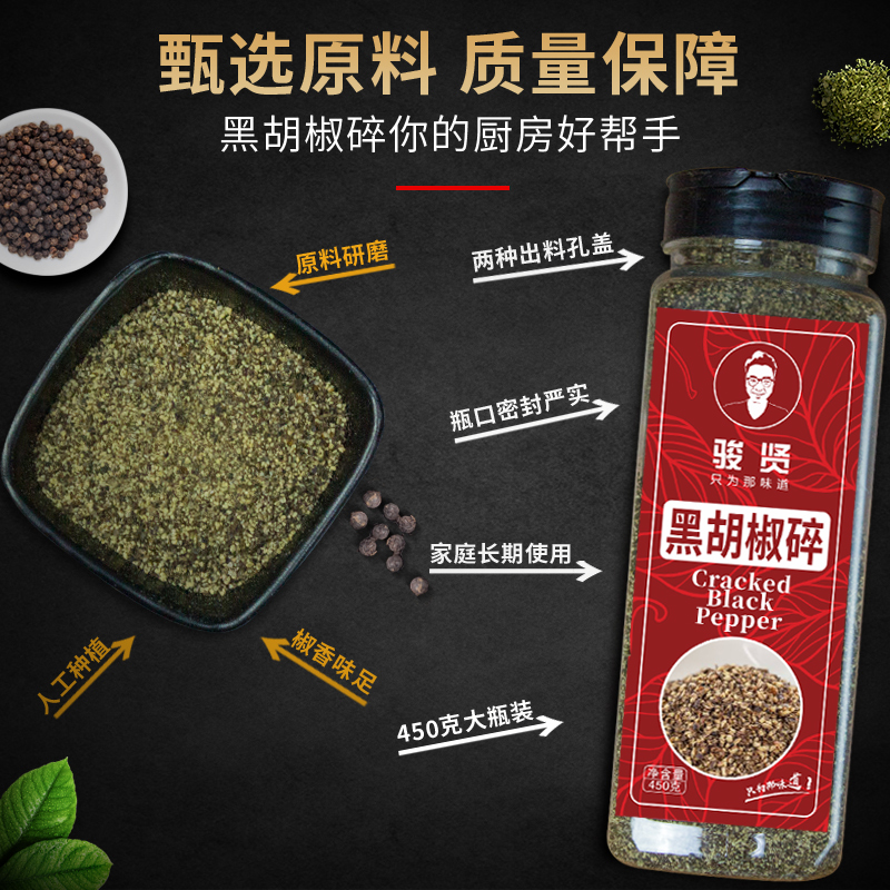 Black Pepper Crushed 450g Large Bottle Commercial Fine Black Pepper Powder Black Pepper Crushed Western Cuisine Baked Steak Ingredients