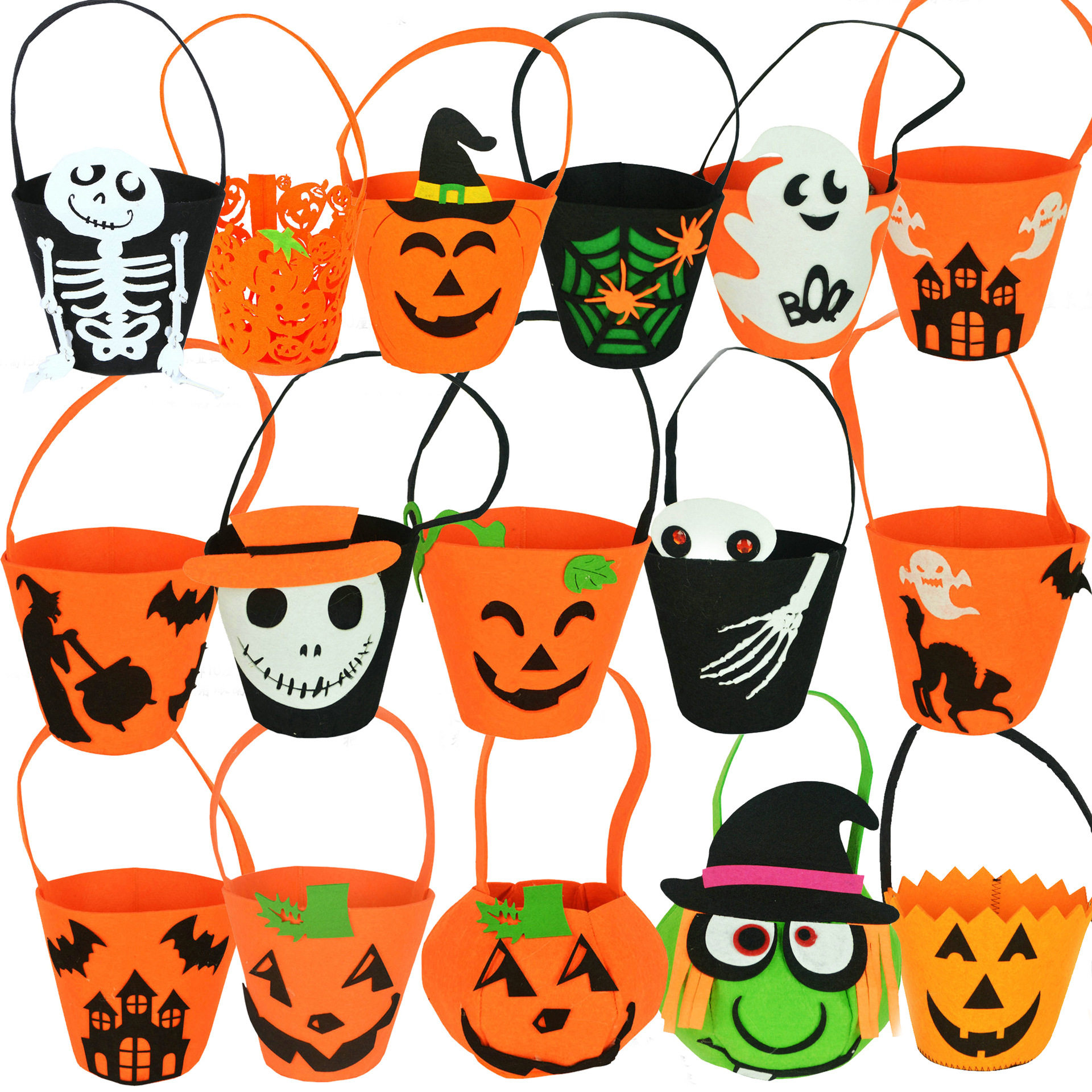 Orange Hollow Pumpkin Bag Orange Smiley Print Pumpkin Bucket Black With Hood Skull Face Pumpkin Bag Black Ghost Claw Eye Pumpkin Bag Black Skull Skeleton Bag Black Spider Web Spider Pumpkin Bag Green