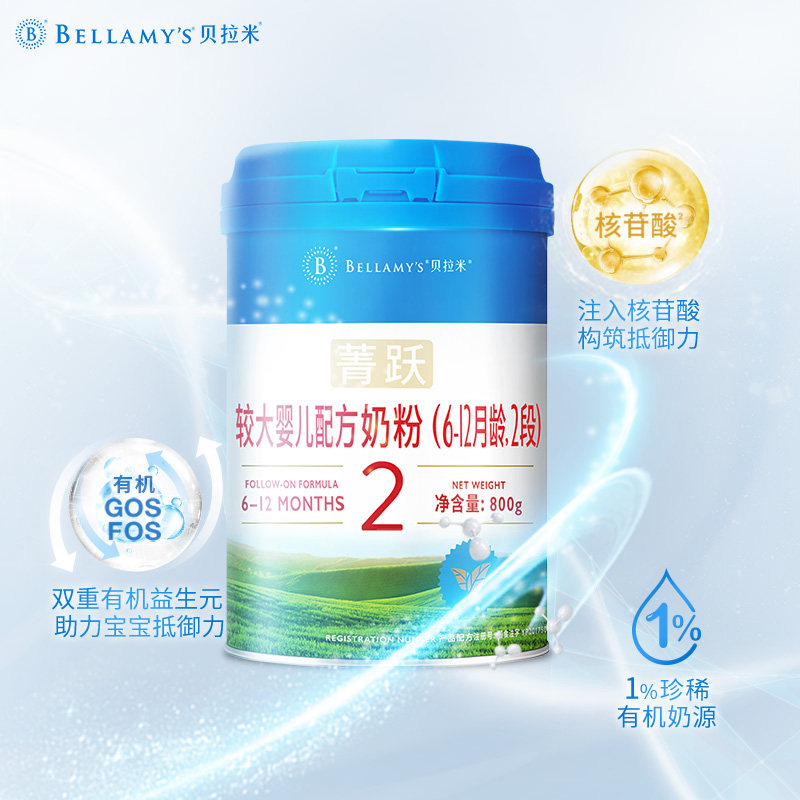 Bellamy official flagship store Jingyue organic larger baby milk powder 2 segment 800g prebiotic New Zealand imports
