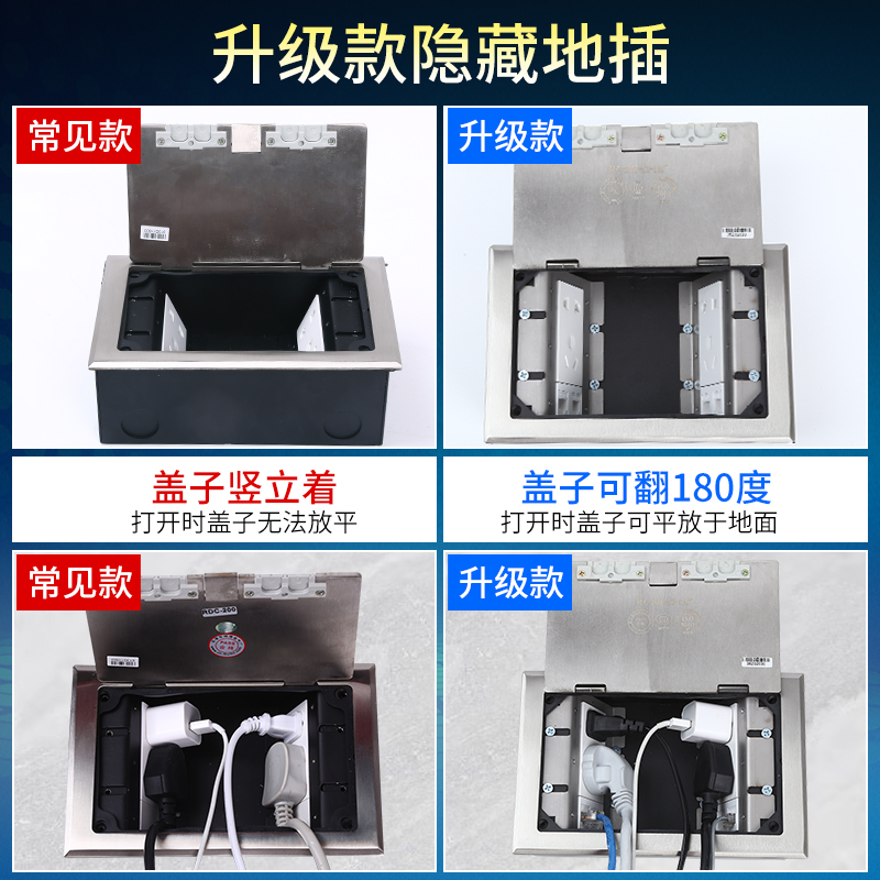 Ruibo di inserted stealth stainless steel box five hole network waterproof overhead opens inlaid with ultra-thin floor socket