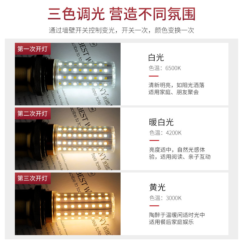 White special e27 screw port 12W white e27 screw port constant current ultra-bright 12W yellow e27 screw port constant current ultra-bright 12W three-color dimming e14 Screw port constant current ultra-bright 1