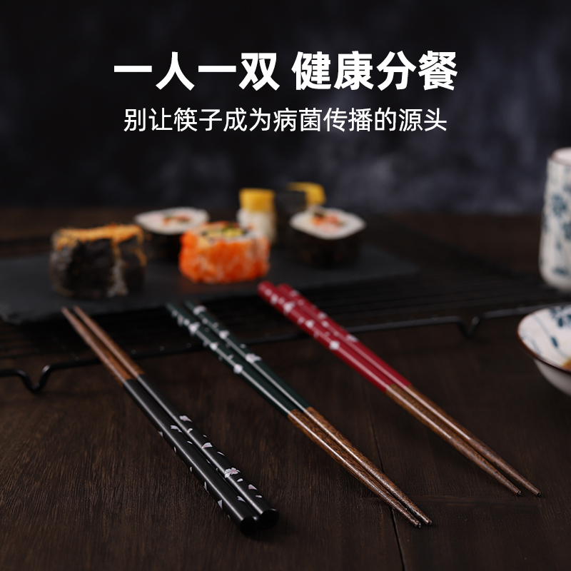 Five pairs of Sakura series log chopsticks - coral pink Sakura series five pairs of log chopsticks - classic red Sakura series five pairs of log chopsticks - elegant purple Sakura series five pairs of log chopsticks -