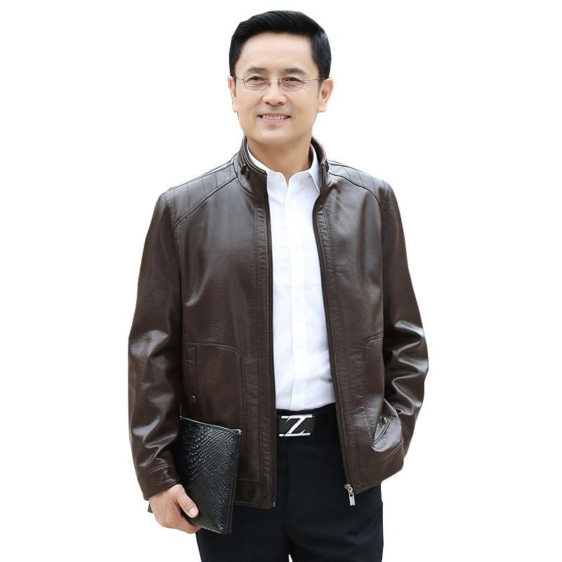 Autumn Winter Middle-aged Men's Locomotive Leather Clothing Spring Autumn Jacket Loose Middle Aged Daddy Loaded and thickened leather jacket