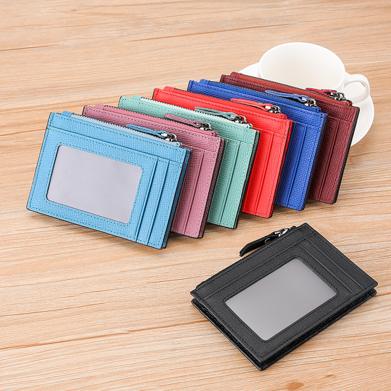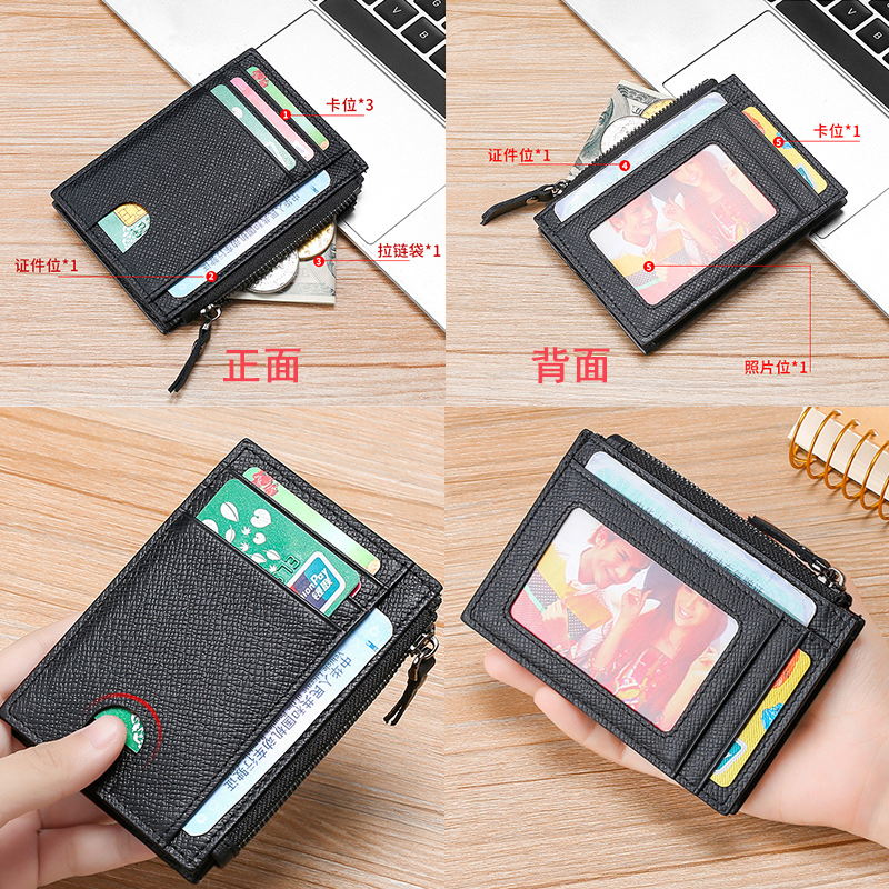 rfid genuine leather men's card clip high-end cow leather cutting sleeve pull chain large capacity lady multi-position card bag zero money bag