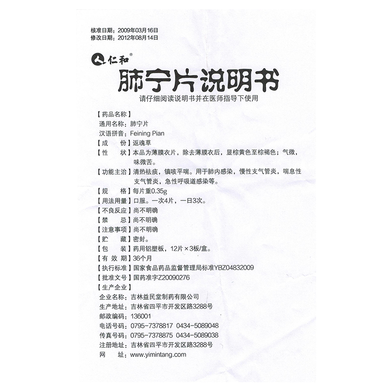 Multi-box preferential) Renting and lung Ning slices 0 35g * 36 tablets Fever Relieving Cough for acute Chronic Bronchitis Bronchial Bronchitis Acute Suction Tract Infection