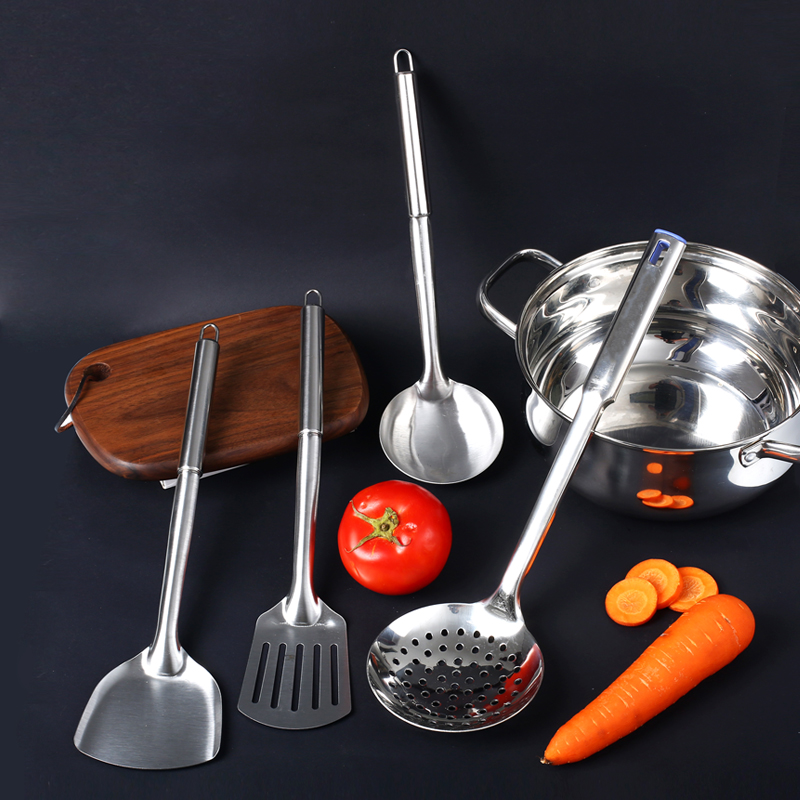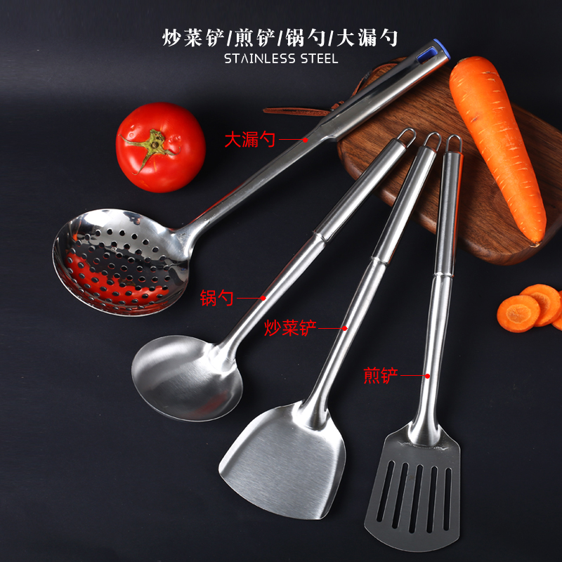 Stainless steel pot shovel soup spoon colander cooking shovel kitchen utensils set kitchen non-stick pot household frying spoon pot spoon thickened