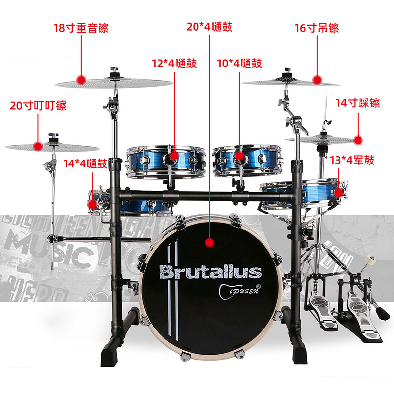 IPUSEN Portable Drum Kit (5 Drums 4 Cymbals) Brushed Blue