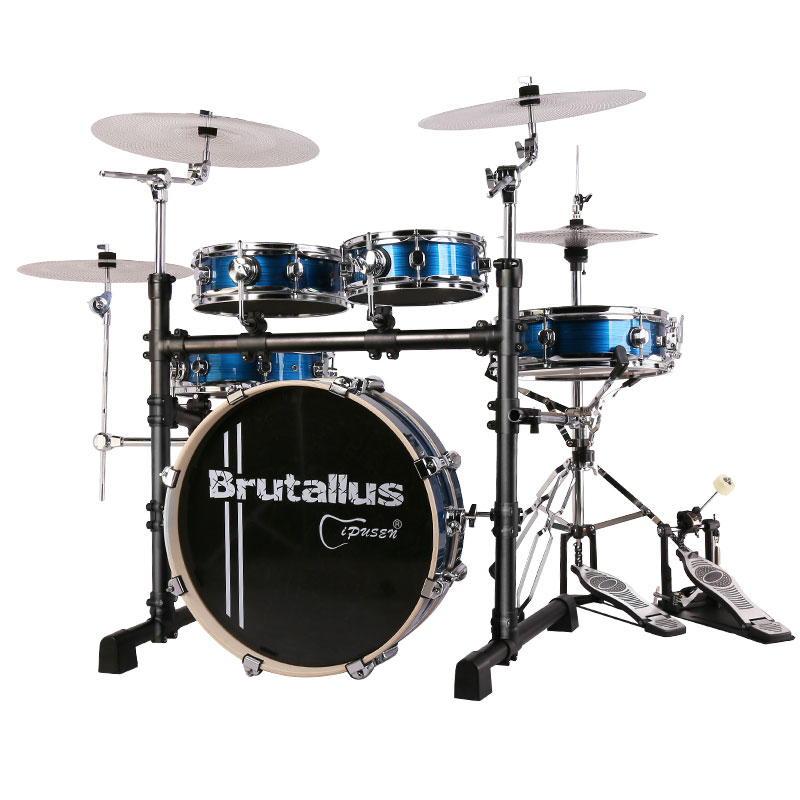 IPUSEN portable drum kit (5 drums 3 cymbals) brushed blue