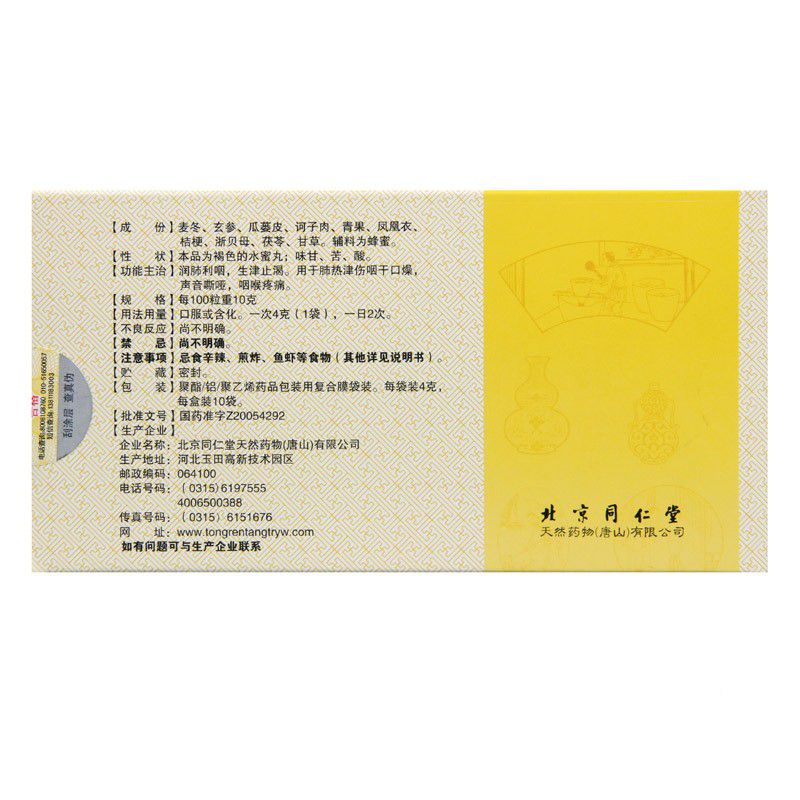Beijing Tongrentang iron flute shot 4g * 10 bags of lung heat and saliva dry mouth and dry mouth and matte iron deluge iron flute Runthroat pill