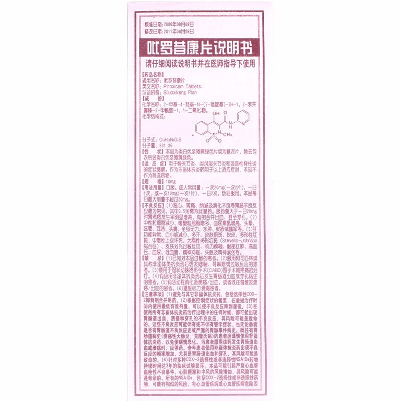 A piroxicone tablet is a piece of