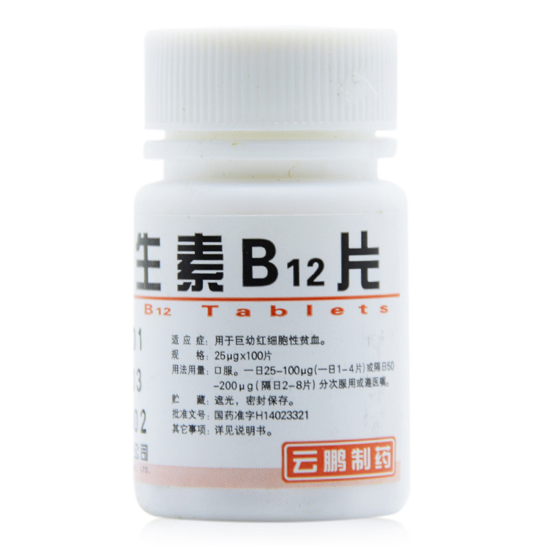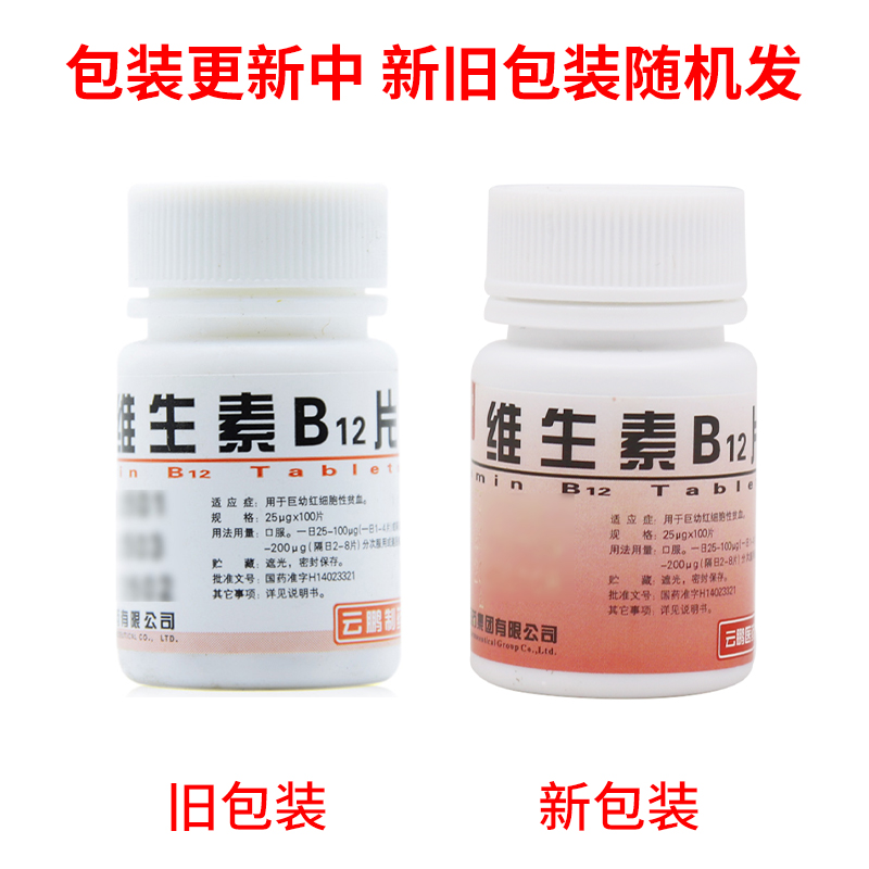 Yunpeng Vitamin B12 Tablet b12 Drug Quasi 100 tablets Anemia Giant Red Blood Red Blood Cell Anemia VB12 Vitamin B12 Drug Ingots Medicinal Small White Bottle Pharmacy Non-otc